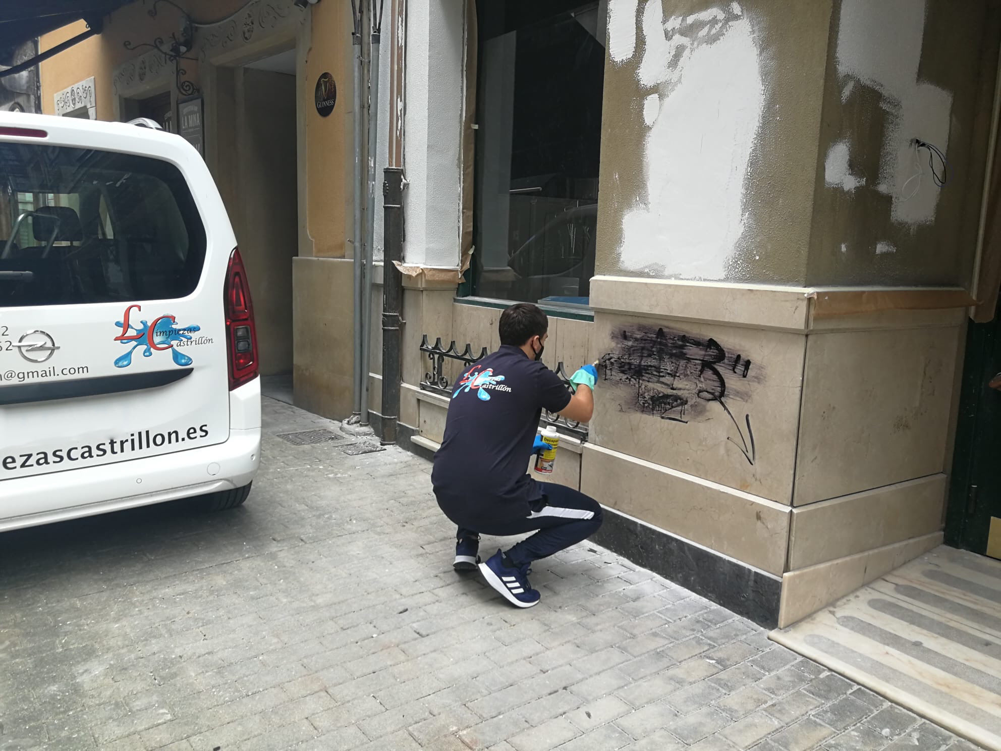 Antes y después de fachada con graffiti.